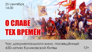 Завершится встреча просмотром документального фильма «На поле Куликовом», с тифлокомментарием. Фильм снят режиссёром Борисом Карповым в 1980 году на Центральной студии документальных фильмов.
